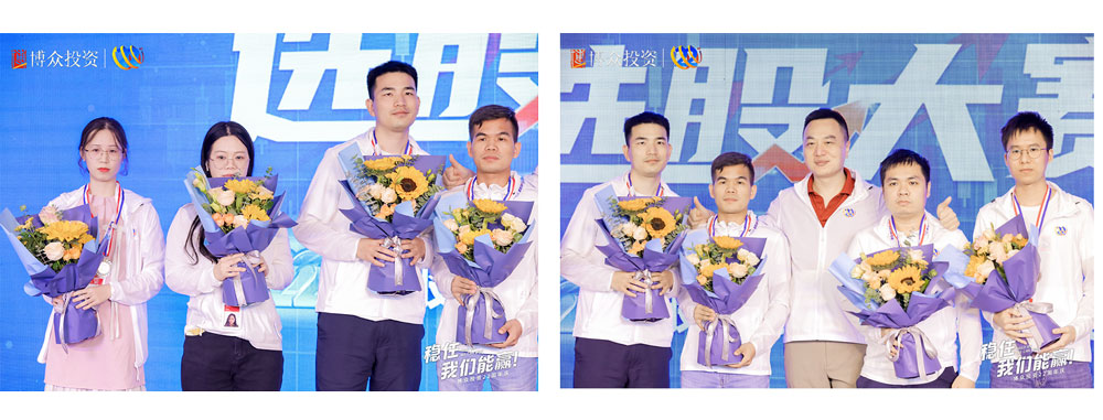 下一項(xiàng)則是選股大賽頒獎(jiǎng)儀式,首先頒發(fā)的是銅獎(jiǎng)獲得者,他們是陳紅董、梁世昌、黃建強(qiáng)、容偉彪、宋文皓、韋蘭忠、程琪、明振友、鄒小翠,由易米的劉總為9為獲獎(jiǎng)?wù)哌M(jìn)行頒獎(jiǎng)以及合影留念。緊接著頒發(fā)銀牌獲獎(jiǎng)?wù)?,他們是:陳燦、陳威、張偉秋、勞志炳、謝俊。繼續(xù)由易米的劉總為4位獲獎(jiǎng)?wù)哌M(jìn)行頒獎(jiǎng)以及合影留念。