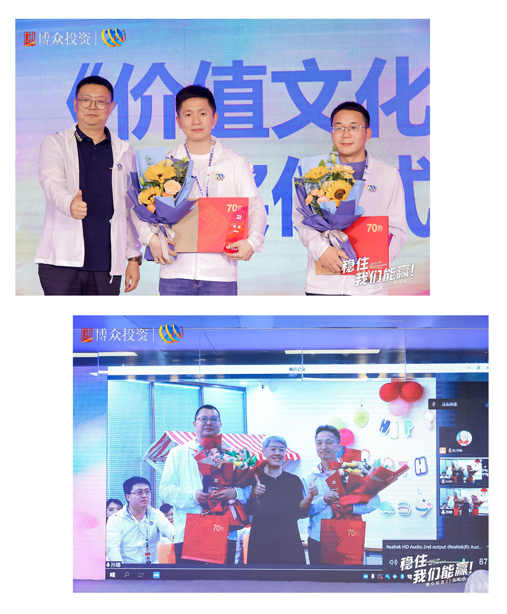 下一項(xiàng)慶典議程是博眾文化頒獎(jiǎng)儀式,首先頒發(fā)的是“以?shī)^斗者為本”獎(jiǎng)。榮獲此項(xiàng)榮譽(yù)的團(tuán)隊(duì),是由朱艷湘率領(lǐng)的行政部。緊接著,頒發(fā)的是“本分”獎(jiǎng),榮獲此項(xiàng)殊榮的團(tuán)隊(duì)是柯炎敏率領(lǐng)的合規(guī)部。均由鄒總為獲獎(jiǎng)團(tuán)隊(duì)頒發(fā)榮譽(yù)并進(jìn)行合影留念。